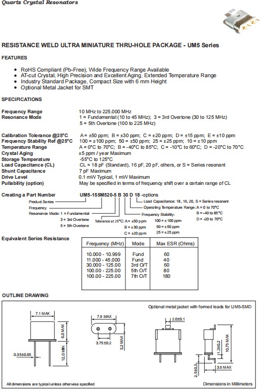 Fortiming晶振,UM5晶振,UM5-155M520-5B30D18晶振